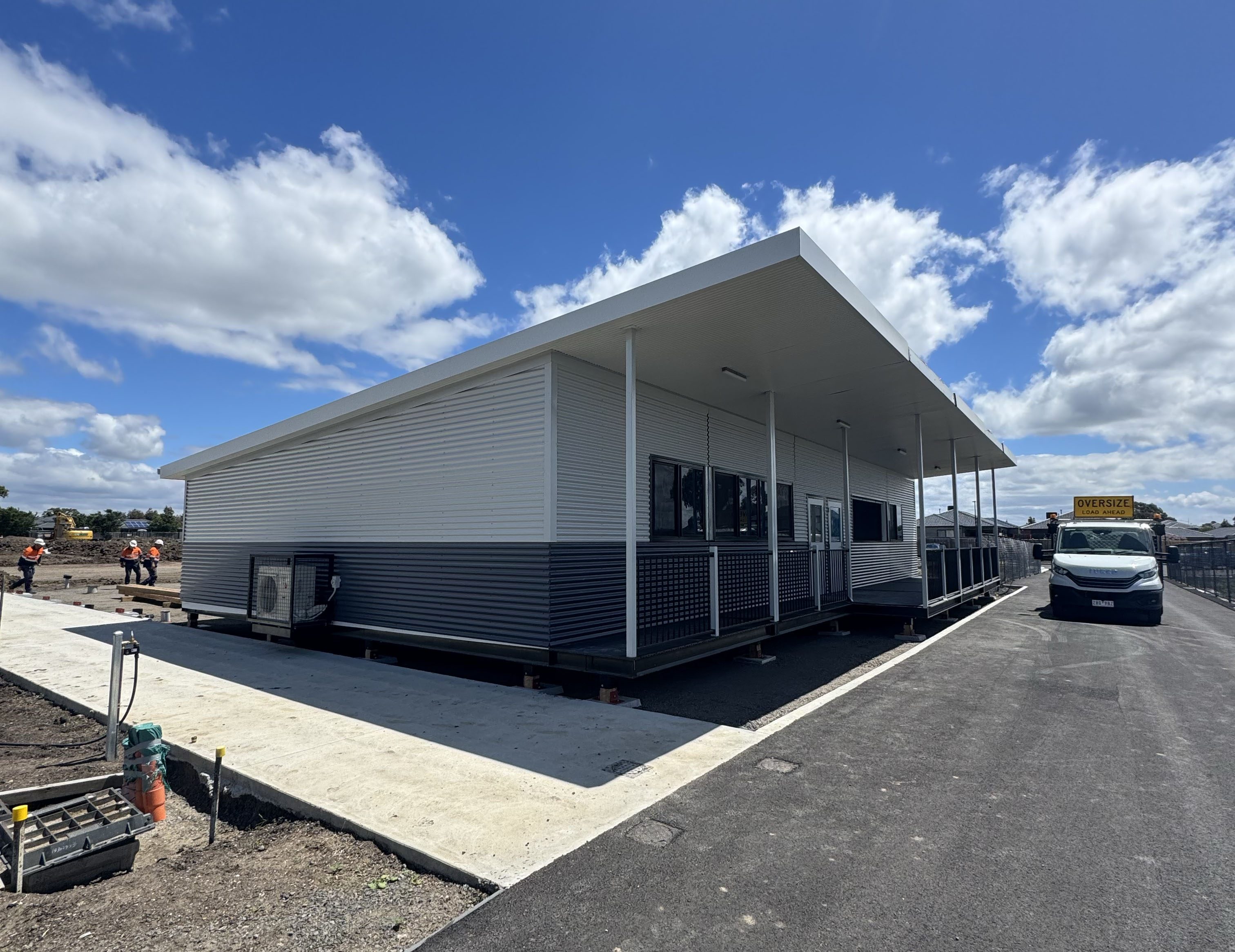 After a busy year of planning and preparation, we are putting the finishing touches on our brand-new Kolbe campus at Mickleham, St Catherine of Bologna. With buildings finished, the landscapers are preparing paths, gardens and lawn, ready for our students to start on January 30. Earlier this month, the specialist portables were craned in and are now being hooked up to electricity and fitted with decking. These purpose-built classrooms will house the specialist subjects of Music, Drama, Food Technology and Materials Technology.